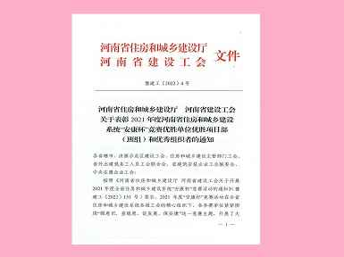 272022.01米兰官方网页版-米兰online(中国)焊工班组荣获“2021年度河南省住房和城乡建设系统‘安康杯’竞赛优胜班组”称号 -