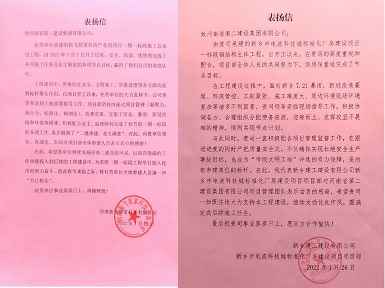 112022.02新乡建工建设有限公司和河南新飞智家科技有限公司向米兰官方网页版-米兰online(中国)发来表扬信 -
