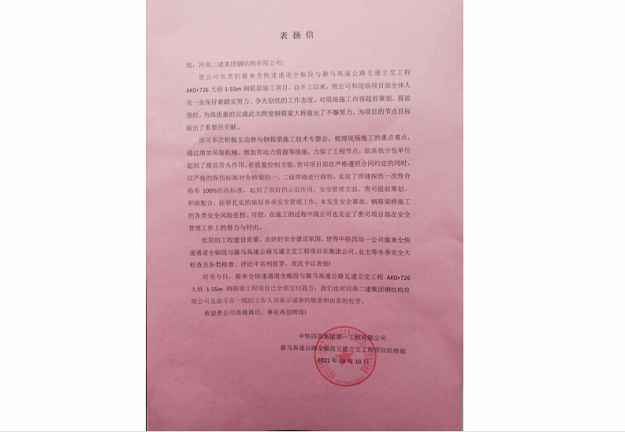中铁四局集团第一工程有限公司向米兰官方网页版-米兰online(中国)发来表扬信